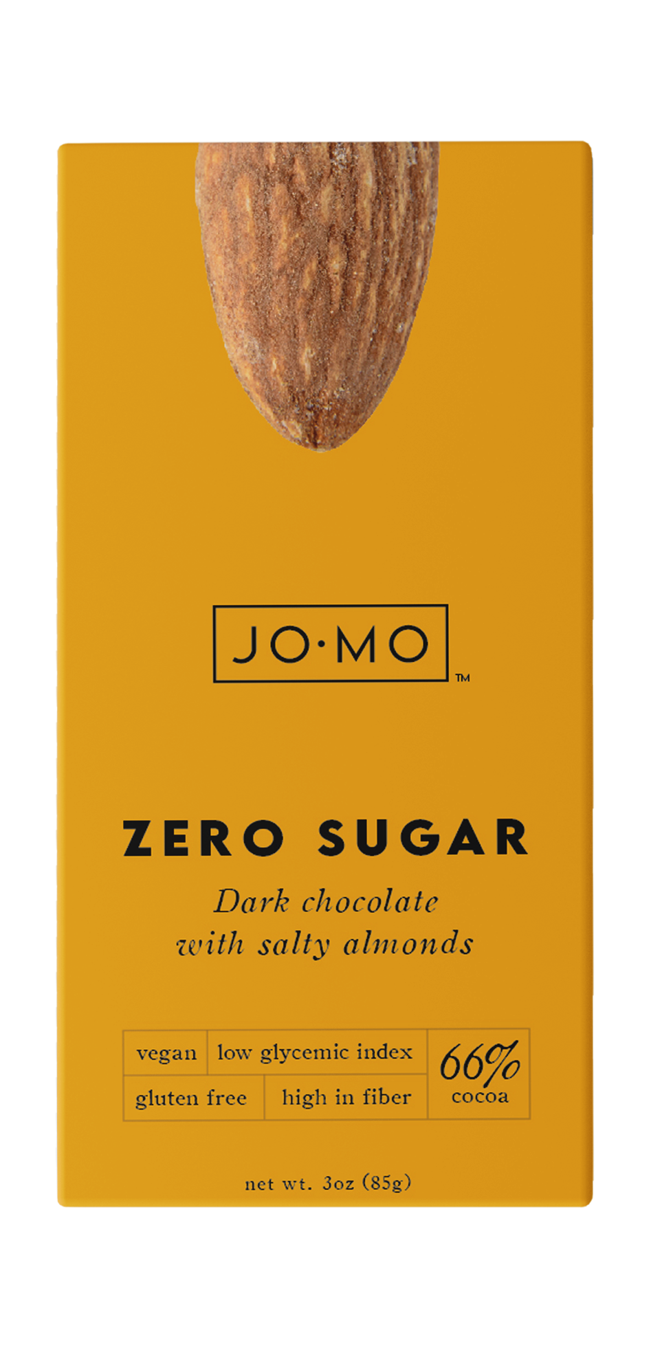 ג’ומו שוקולד מריר ללא תוספת סוכר עם קראנץ שקדים מלוחים.