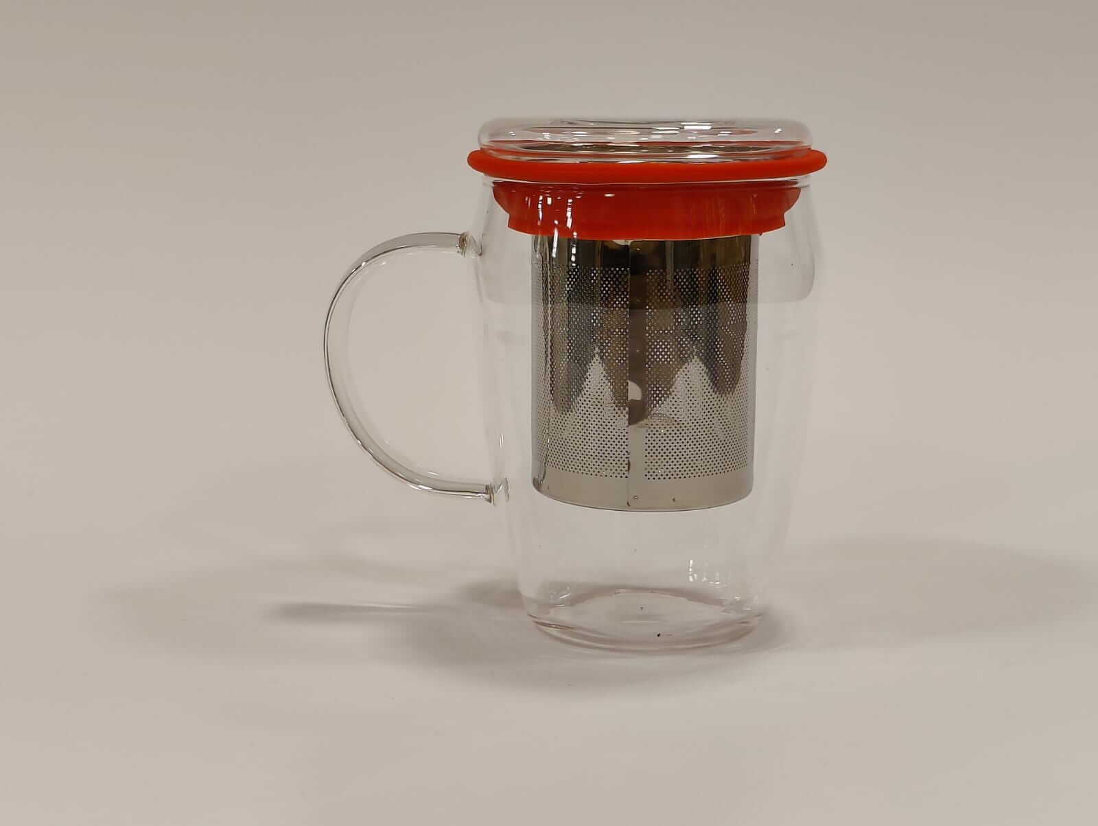 ספל עם מכסה וידית, עם פילטר נירוסטה לחליטת תה צבע אדום