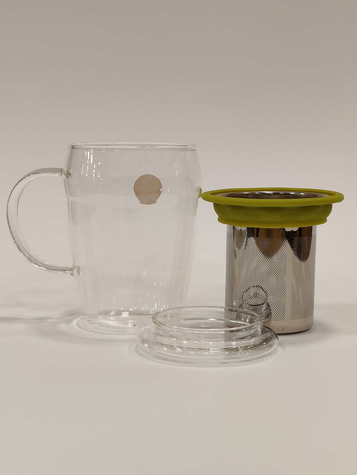 - 3 חלקים : ספל + מכסה מזכוכית, מסננת מנירוסטה.