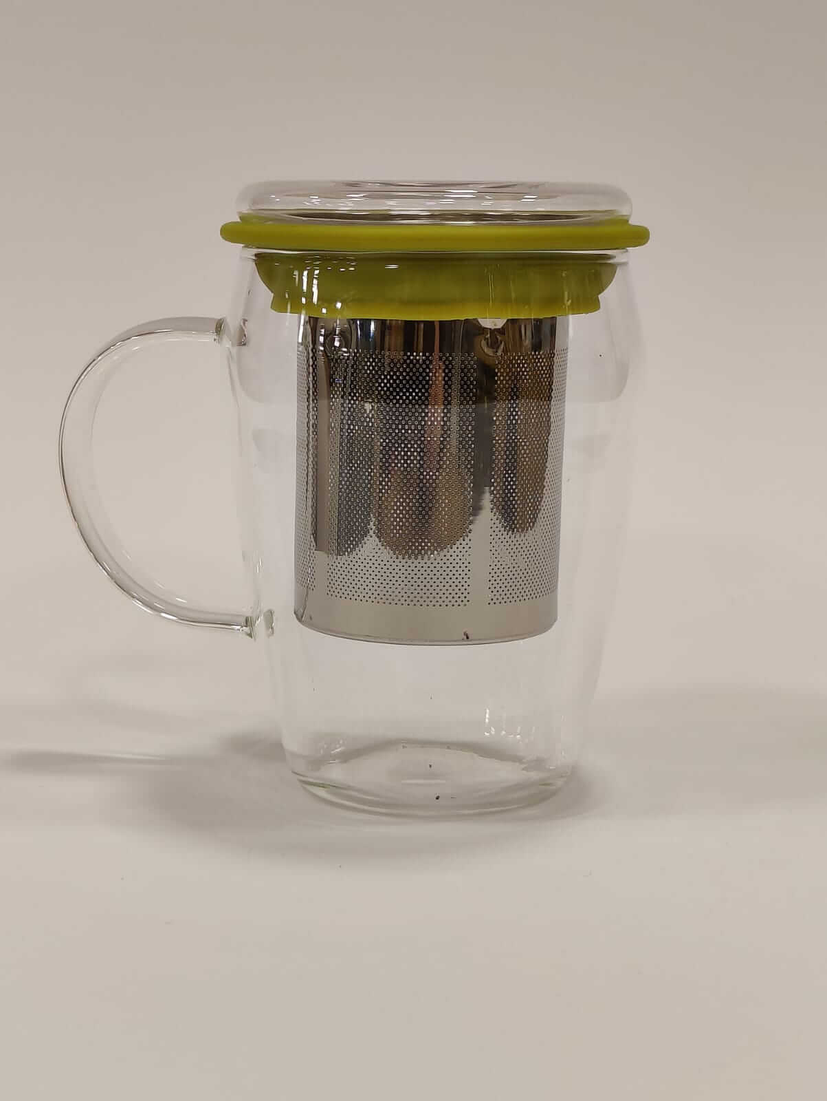 ספל עם מכסה וידית, עם פילטר נירוסטה לחליטת תה צבע ירוק